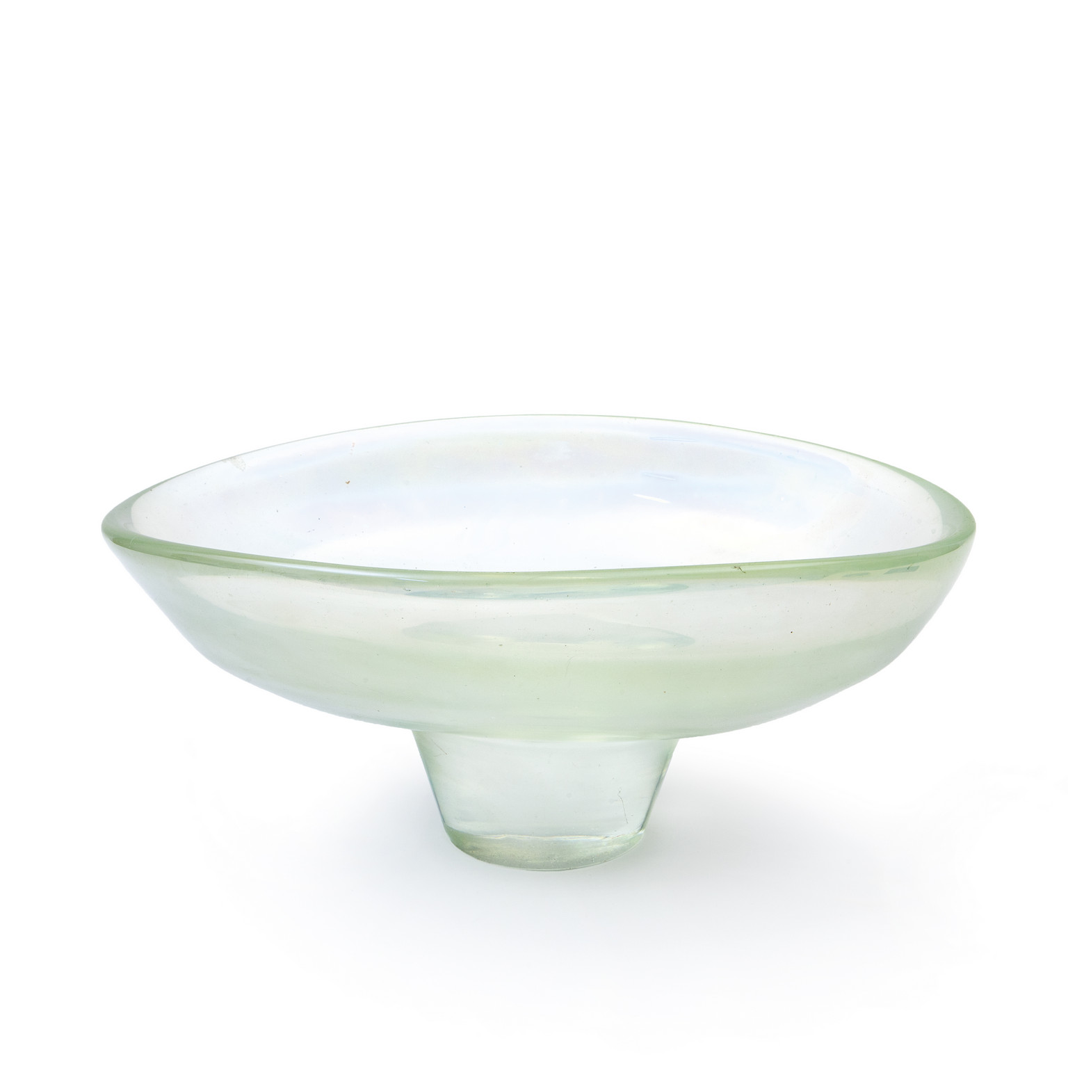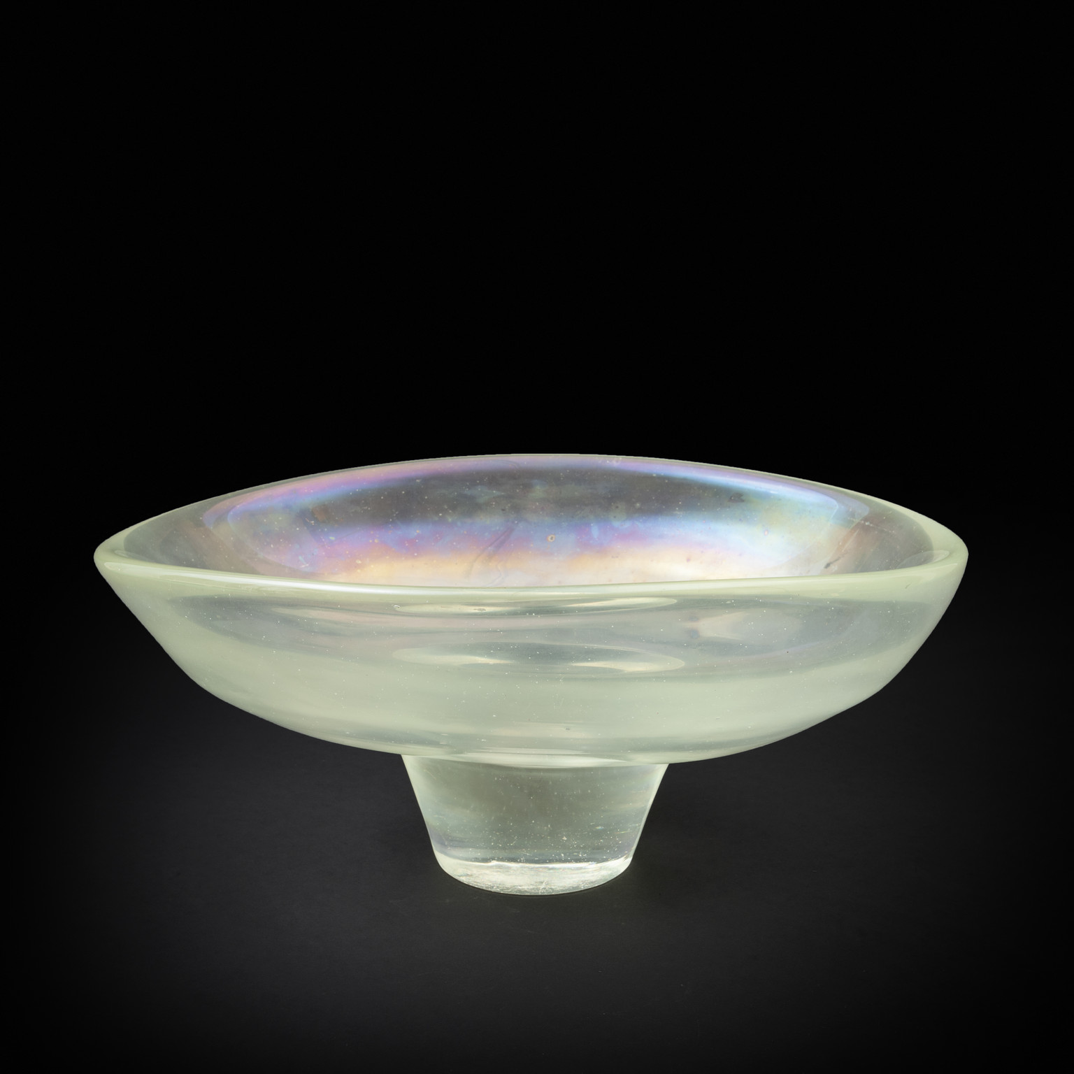 Una grande coppa ovale in cristallo iridato di forte spessore circa 1940.