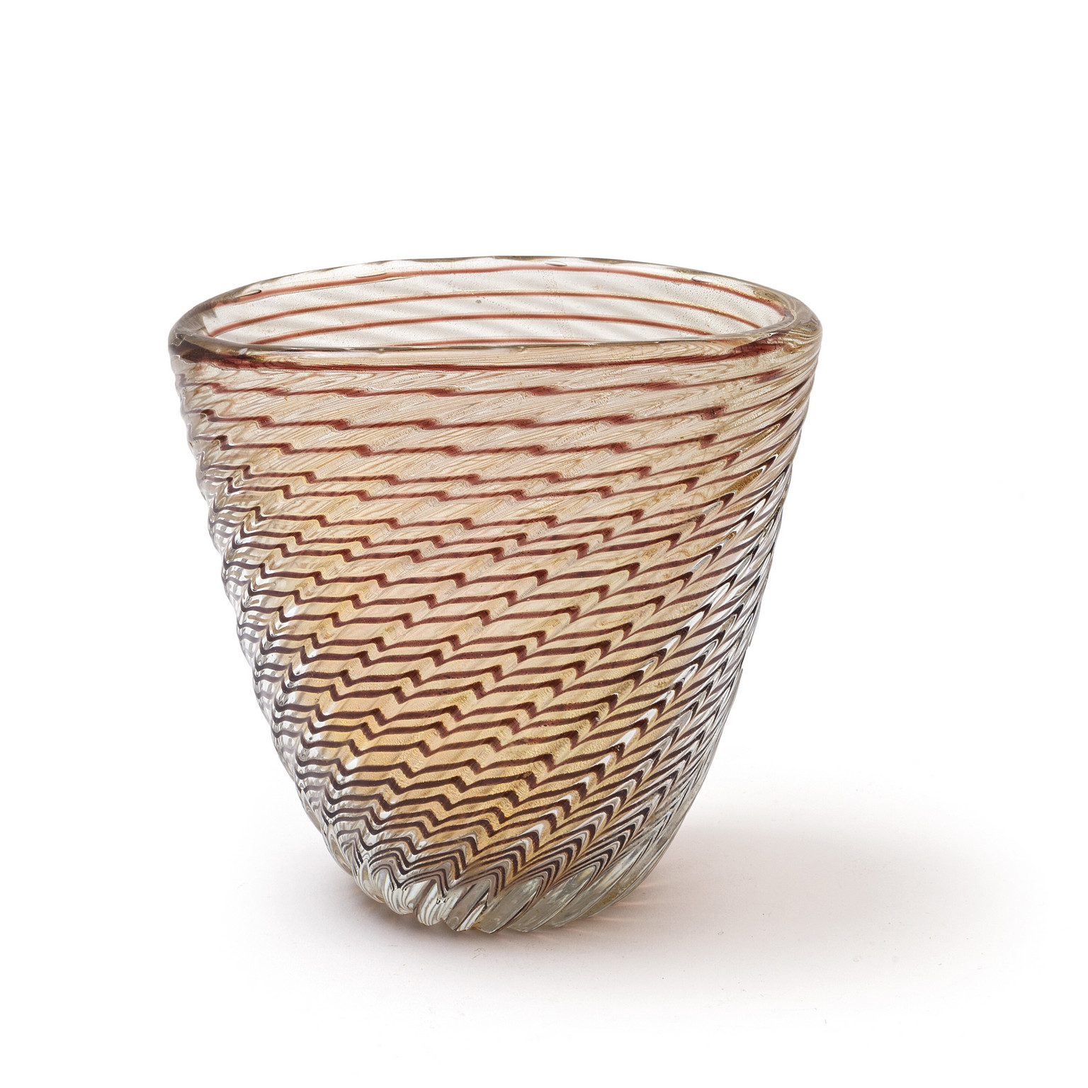 Un vaso in vetro zebrato e foglia oro circa 1950.