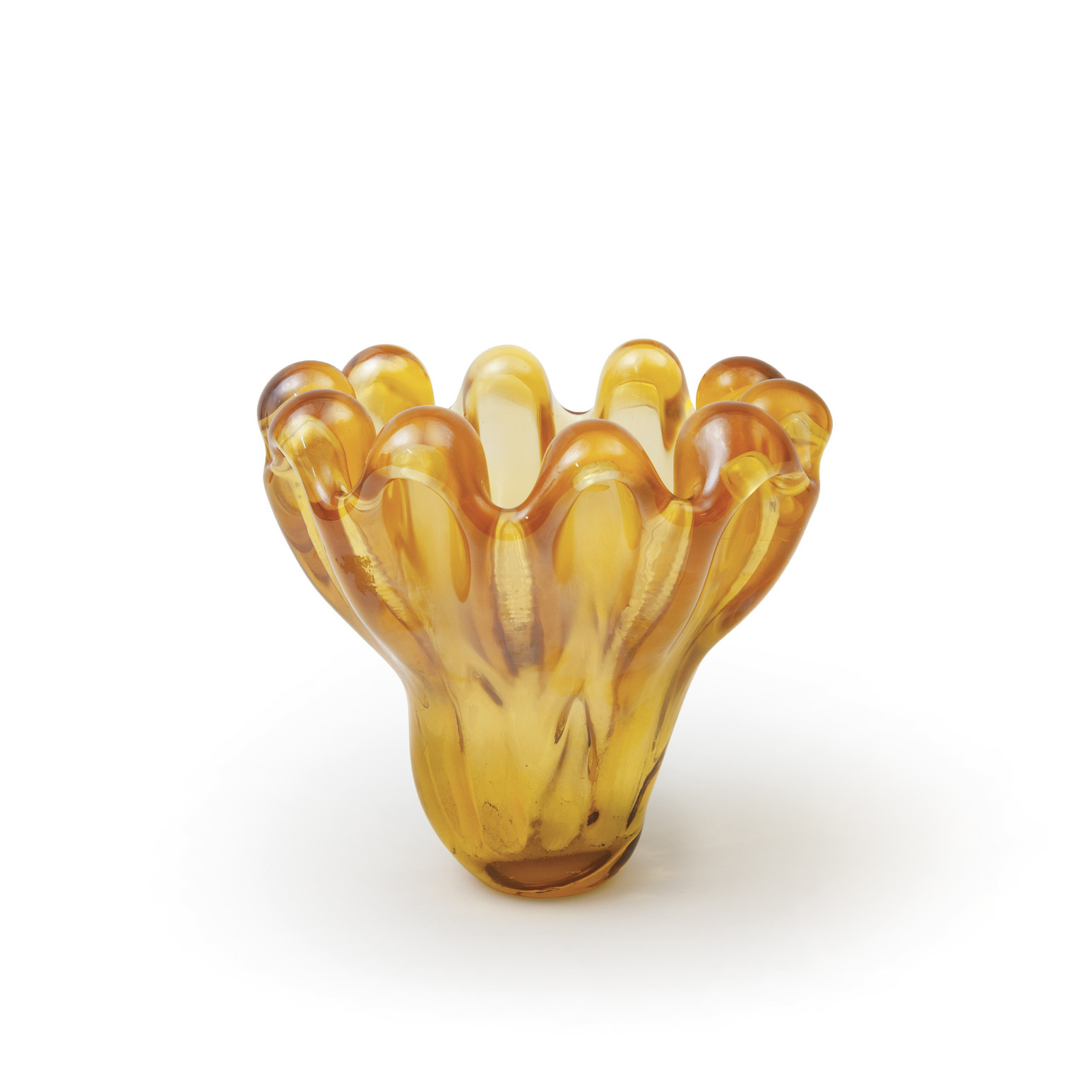 Un vaso a conchiglia in vetro ambra iridato circa 1942.