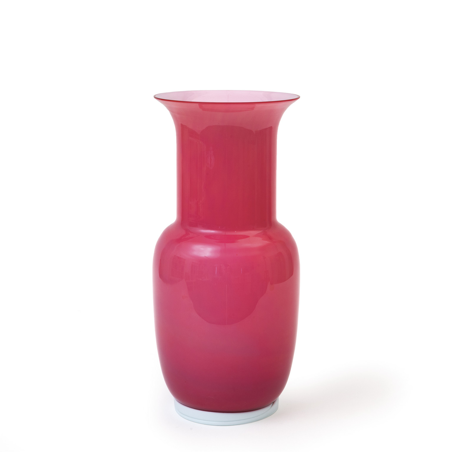 Un vaso in vetro incamiciato rosa/lattimo circa 1970.