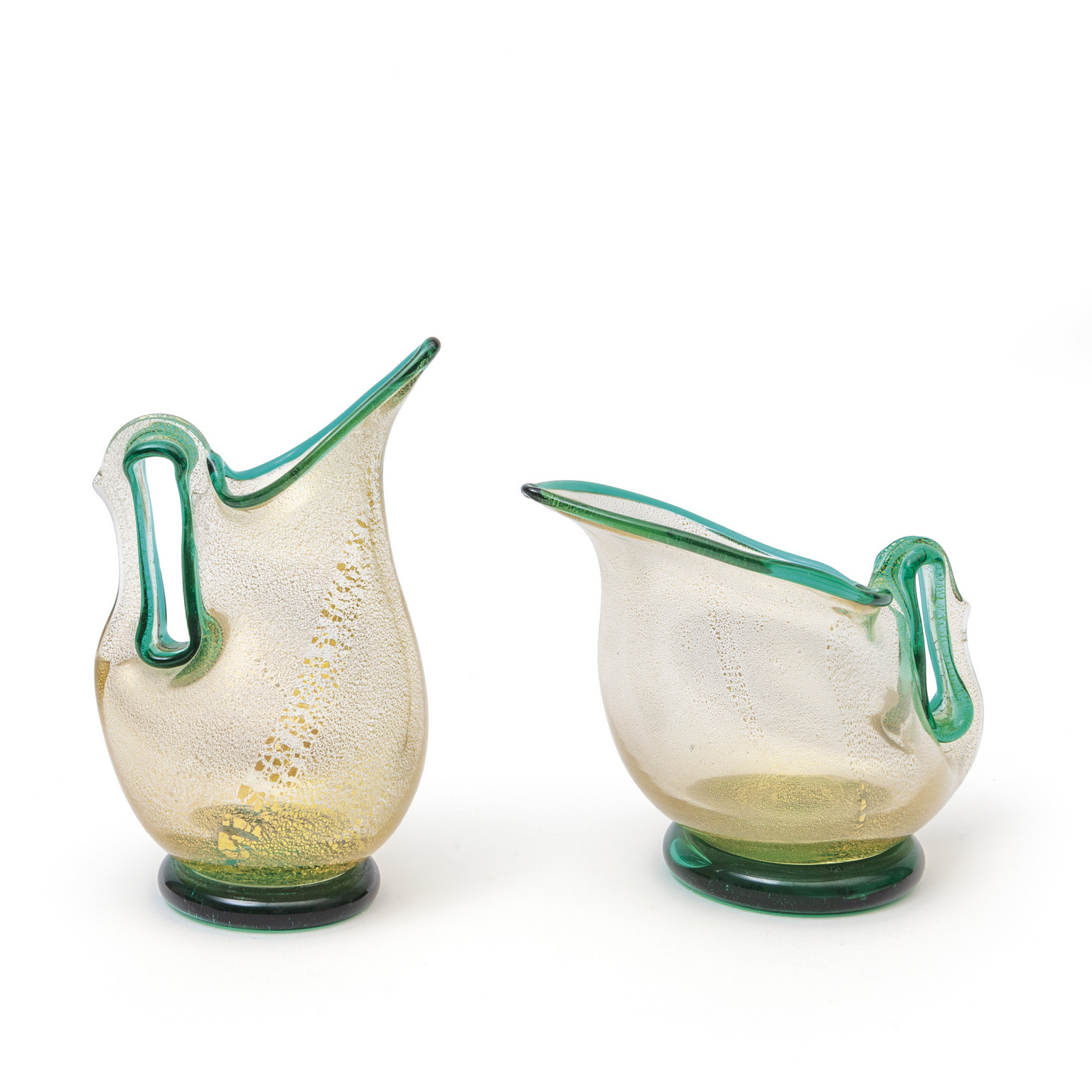 Due vasi in cristallo e foglia oro e orlo in vetro circa 1950.