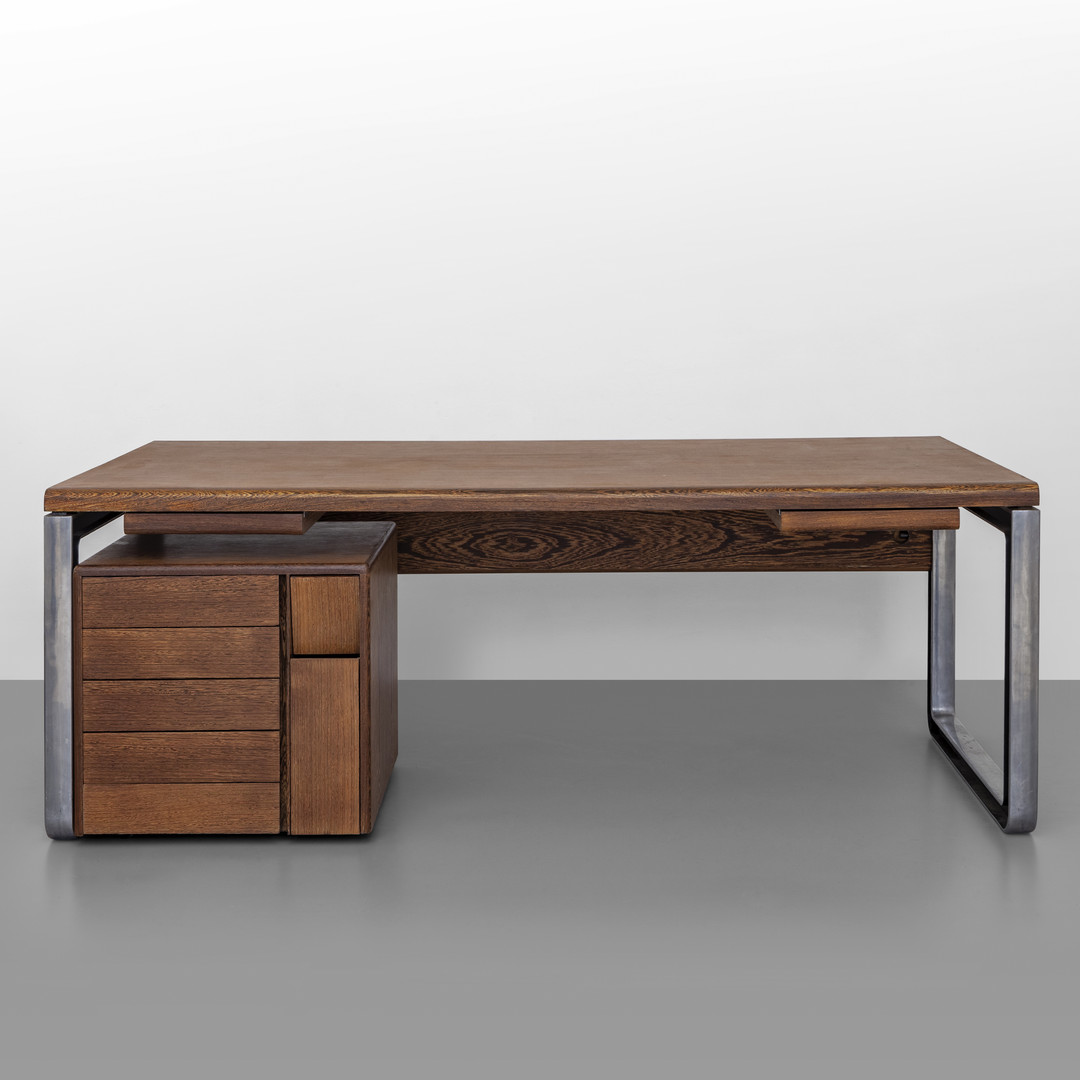 Desk (cast aluminum and wengé wood): 27.9 (h) x 78.7 x 39.4 inches;