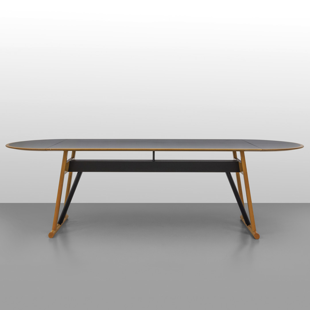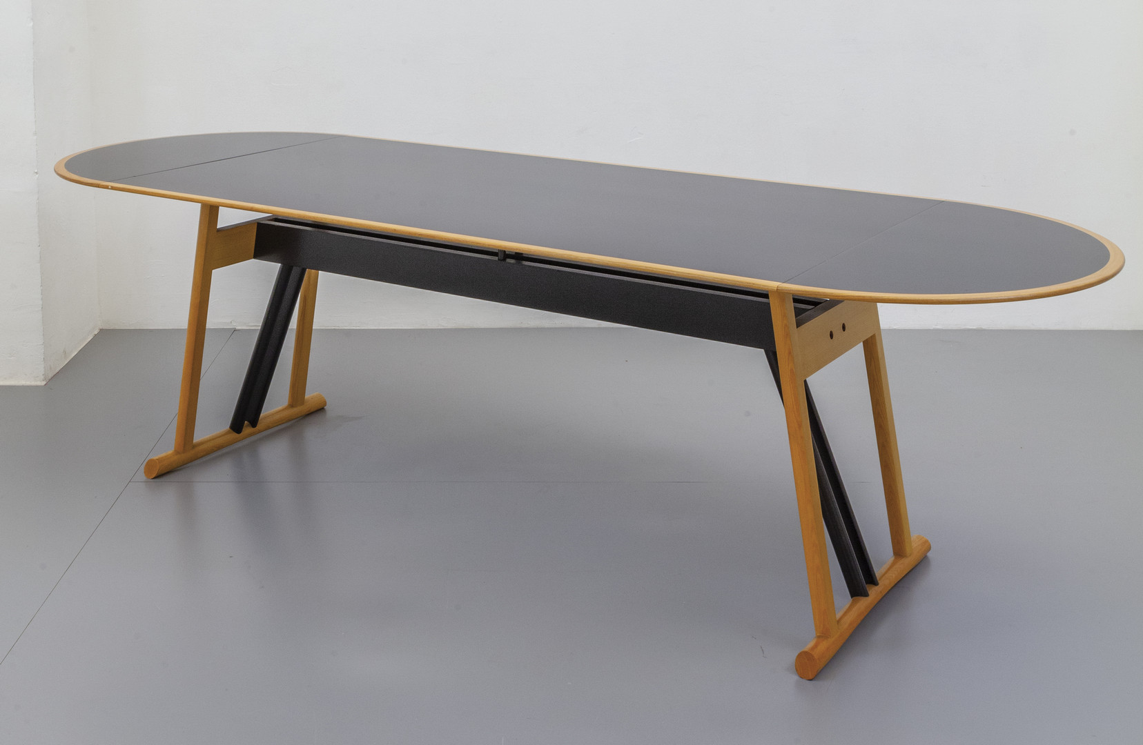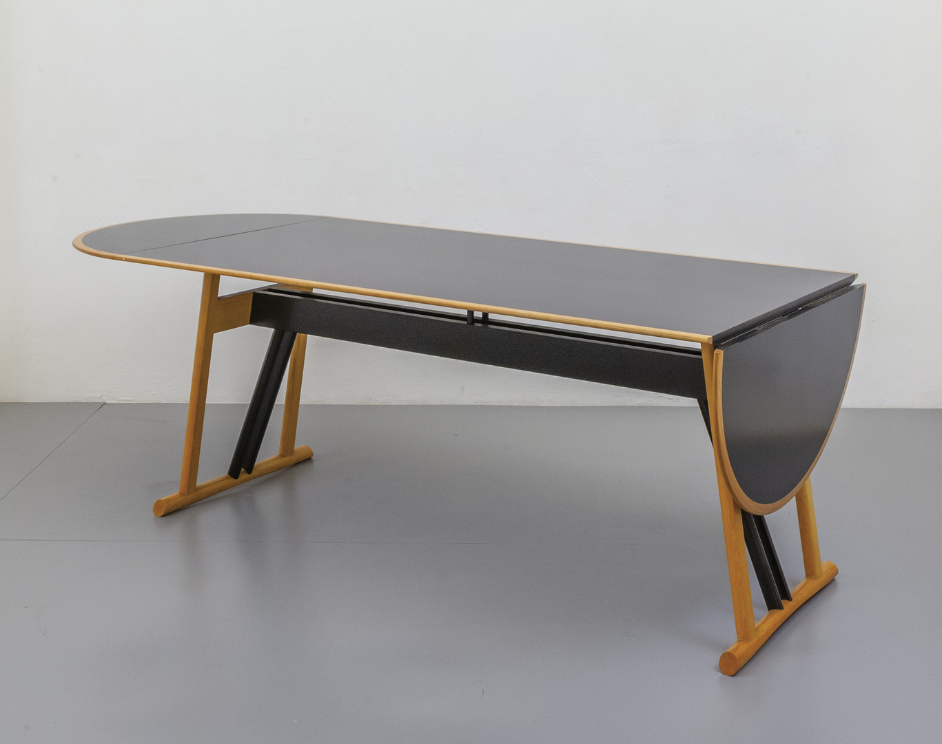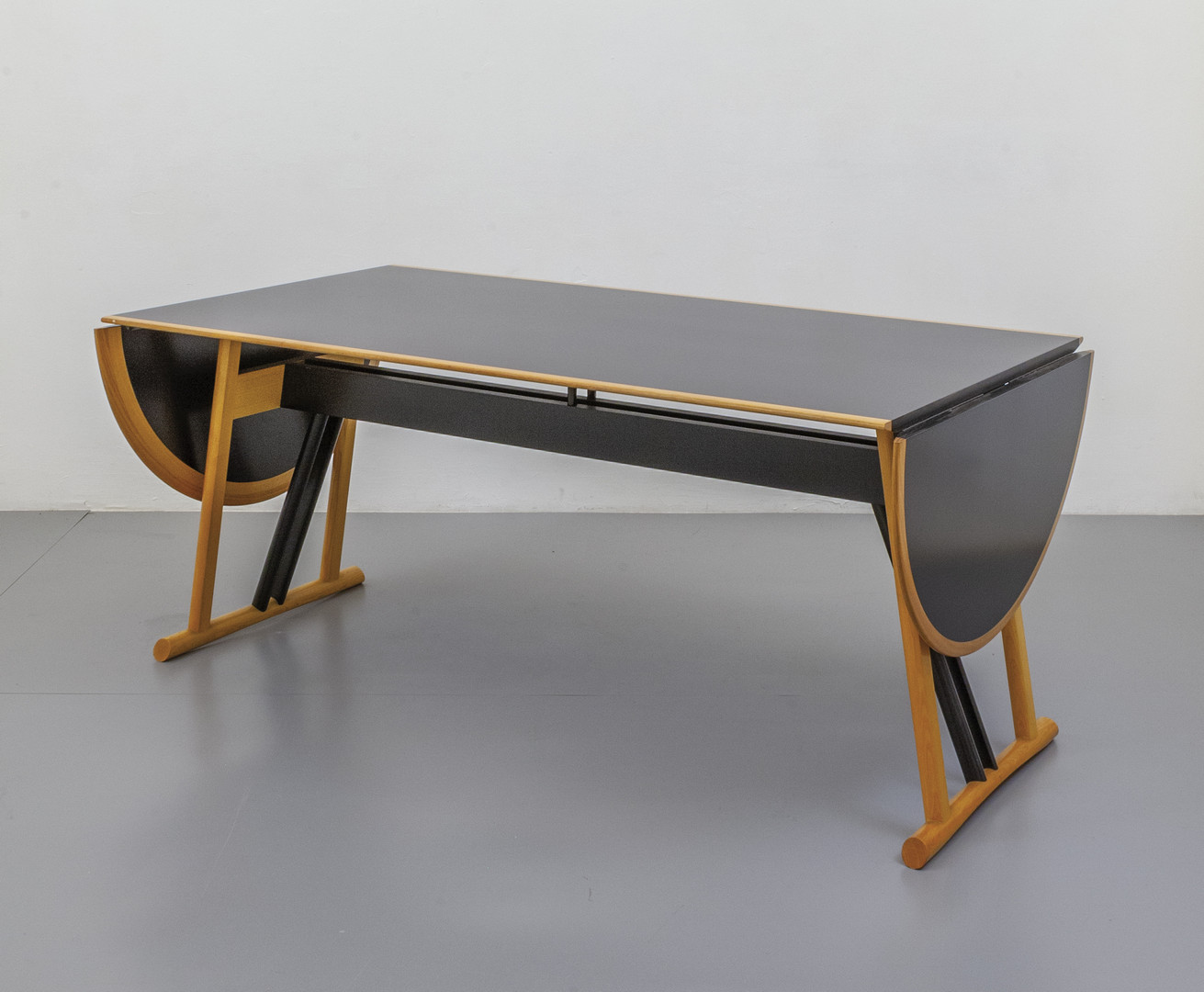 An extendable table 'Ariante' for CASSINA 1984. Beech wood lacquered wood top covered in laminate.