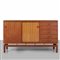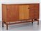 Teak wood teak veneered wood and brass. Manufacturer's label.