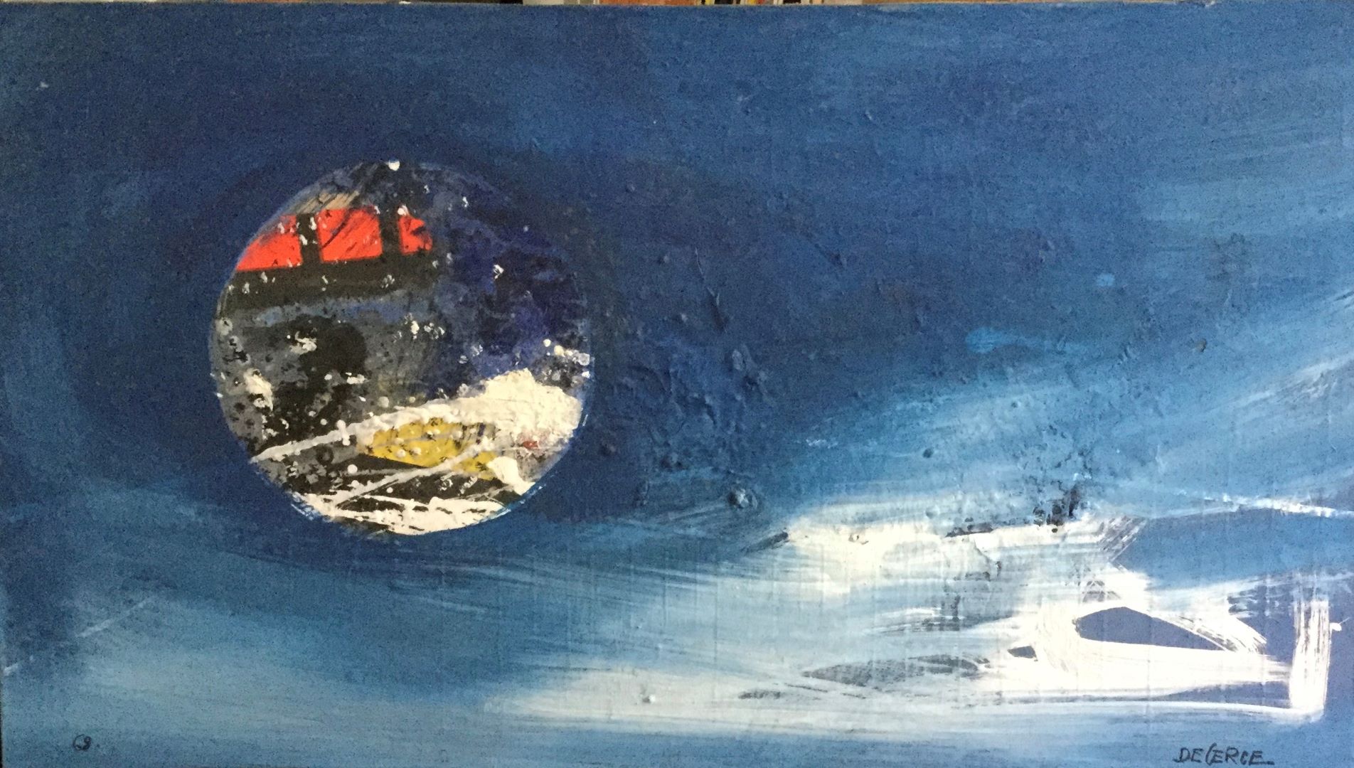 Bruno De Cerce Destinazione ignota, 1963, tecnica mista su tela, 51 x 91 cm,firma