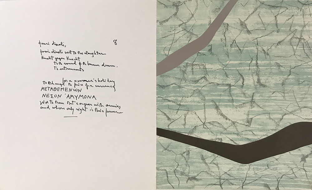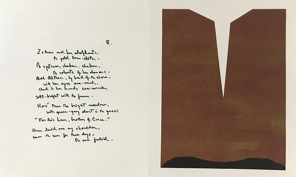 Canto XVII (da "A Draft of XXX Cantos") e frammenti del Canto LXXVI (da "Canti Pisani") di Ezra Pound contenente sette litografie di Giuseppe Santomaso. Il testo è stato litografato sulla base della scrittura di Ezra Pound.