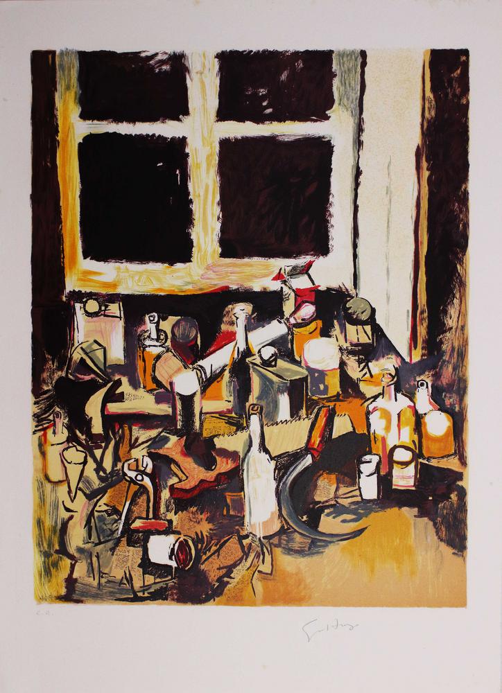 Renato Guttuso Oggetti sul tavolo e finestra di sera, 1982 Litografia a...