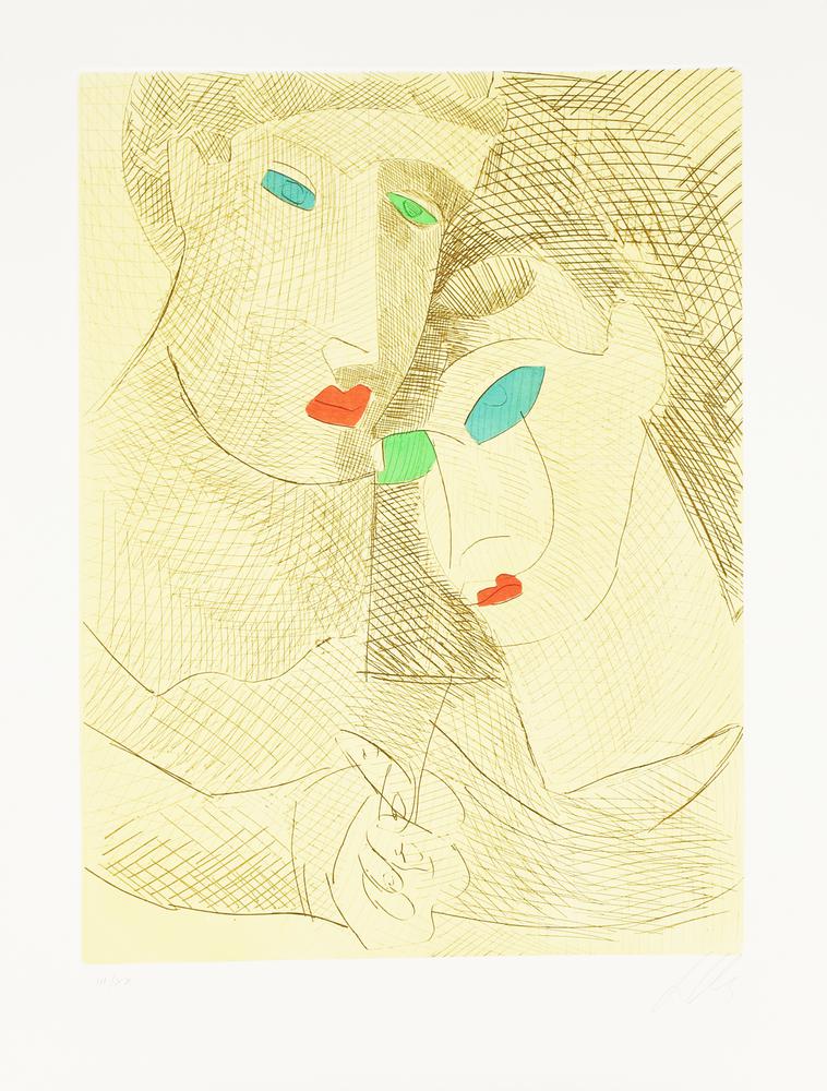 cartella con cinque acqueforti-acquatinte, battuta cm 60x44, foglio cm 76x55; es. III/XX