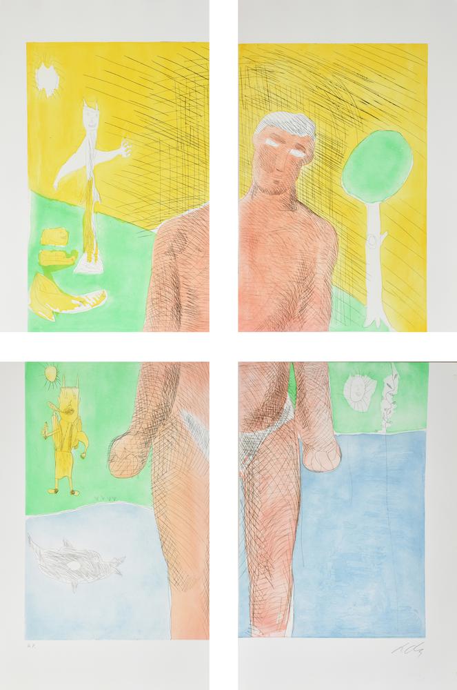 Sandro Chia SENZA TITOLO opera composta da 4 incisioni su carta, battute cm...