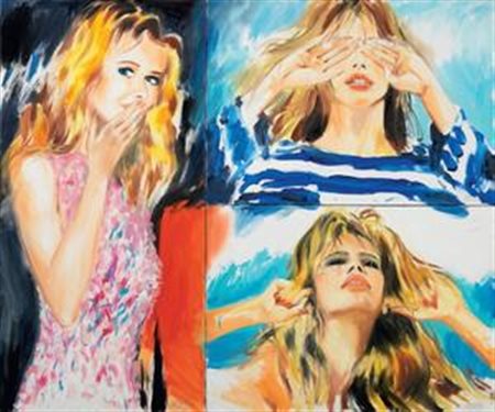 Janusz Haka Bjtom 1951 Ritratti (Claudia Schiffer) Olio su tela, trittico, cm. 100,5x120 Firma in basso a destra su ogni tela: Janusz Haka.
