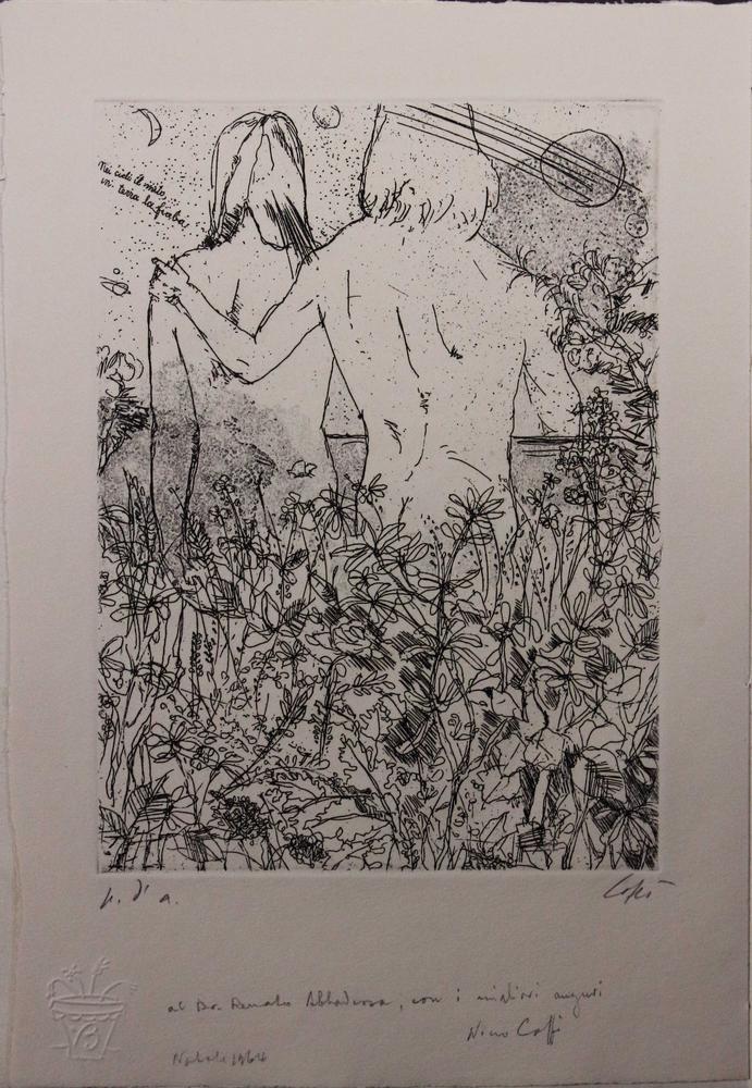 Nino Caffe' Senza titolo, 1974 Acquaforte bianco e nero allegata alla...