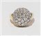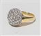 ANELLO IN ORO BIANCO E GIALLO 18K Realizzato come una fascia con sommità circolare interamente decorata a pavé di diamanti (peso stimato 2.80 carati). Peso complessivo 12,82 grammi.