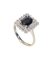 ANELLO IN ORO BIANCO 18K Realizzato con zaffiro blu ovale posto entro cornice di piccoli diamanti. Peso complessivo 5,10 grammi.