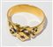 BRACCIALE TESTA DI SERPENTE In oro giallo 18K, inizi XX secolo, realizzato come una manetta rigida decorata sommitalmente con serpente avvolto attorno ad uno scudo. La testa del serpente è arricchita da uno zaffiro ovale e piccole rose di diamante, lo scudo da un rubino a cuscino e piccole rose di diamante. Peso complessivo 44,00 grammi. Lievi ammaccature