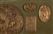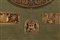 ENEA STEFANI Quadro espositivo di studi vari eseguiti a sbalzo in lastra di bronzo per la ditta Coldwell di New York, incorniciato da fascia d'argento con ai quattro angoli palmette in argento. Opera pubblicata in “Enea Stefani, autobiografia”, tavola n. 16. Opera accompagnata da fotografia ritraente quest’ultima in un’esposizione di Enea Stefani ad inizio secolo scorso. Cm 57,5x93.