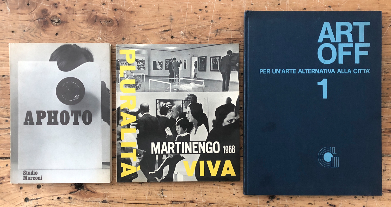 Catalogo riccamente illustrato edito in occasione dell'esposizione tenutasi presso Martinengo, 1968 (opere di Baj, Barbanti, Bertini, Boetti, Bonora, Calzolari, Caruso, Coter, Di Bello, Equipo - crònica, Eulisse, Fomez, Gallina, Glauber, Madella, Elio e Umberto Mariani, Mario e Marisa Merz, Olivieri, Pasotti, Parzini, Rotella, Sacconi, Tagliaferro, Vago, Zorio)