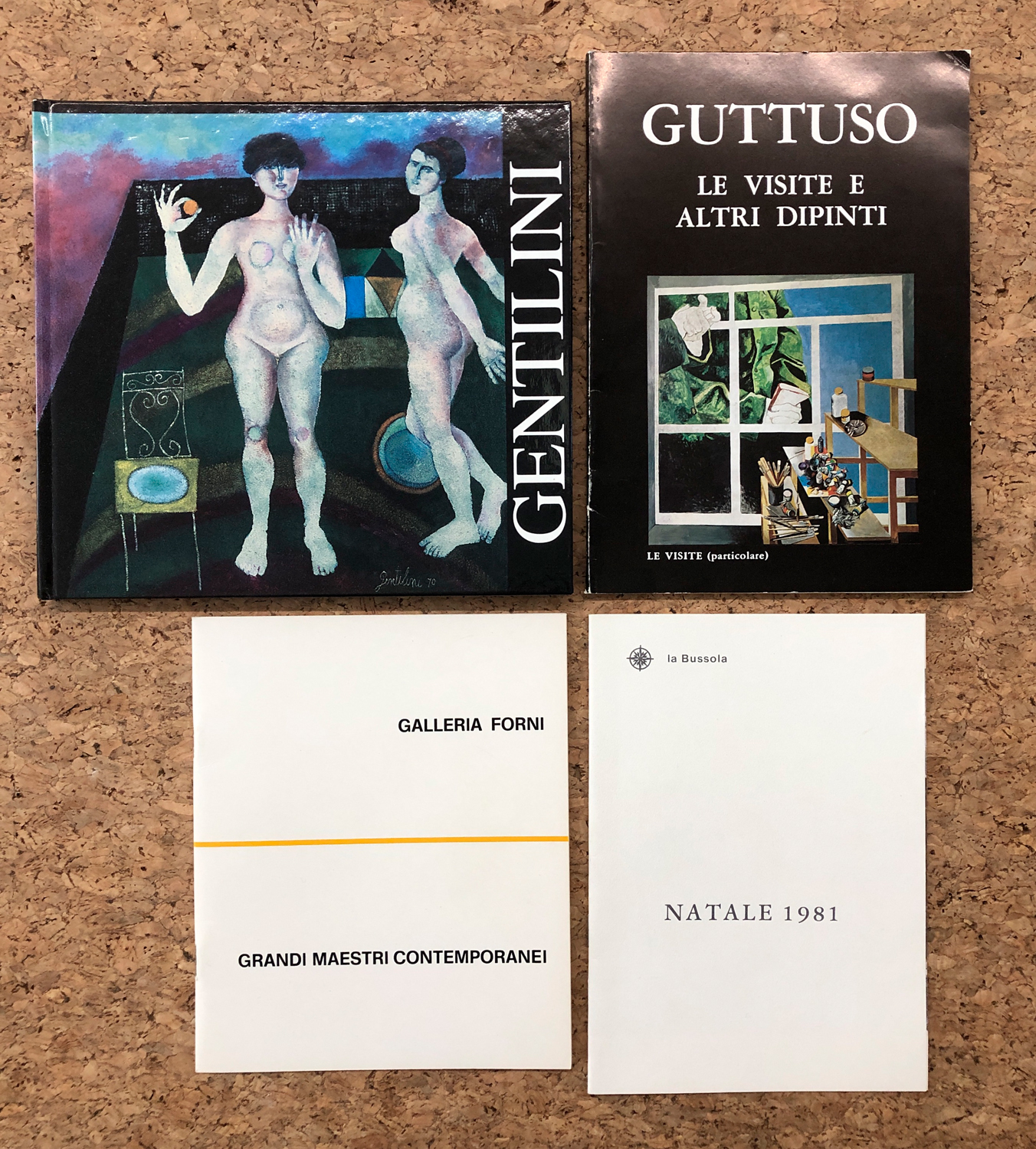 Catalogo riccamente illustrato, con opere di De Chirico, Utrillo, Guttuso, Savinio, Morandi, Sironi, Rosai, Cassinari, Severini, Sutherland, Léger, De Pisis, edito in occasione dell'esposizione tenutasi presso Galleria la Bussola, Torino, 1981