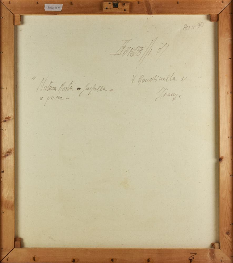 Enrico Bandelli NATURA MORTA CON FARFALLA E PESCE acrilico su tela, cm 90x80...