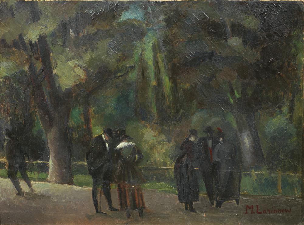 Michail Fedorovic Larionov FIGURE NEL PAESAGGIO olio su legno, cm 26x33,5...