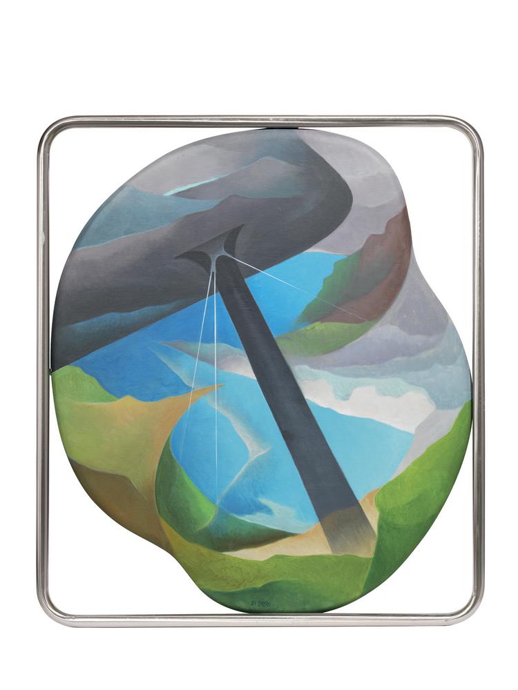 olio su tavola, cm 69x59 con cornice tubolare dell'artista cm 72x62