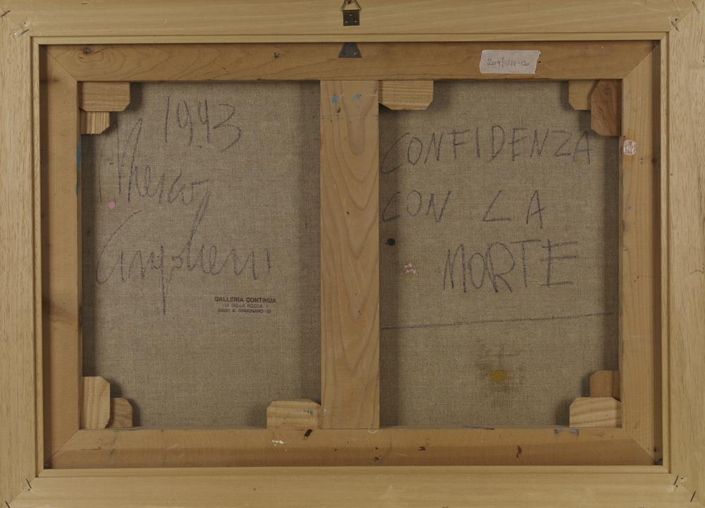 Marco Cingolani CONFIDENZA CON LA MORTE olio su tela, cm 50x70 sul retro:...