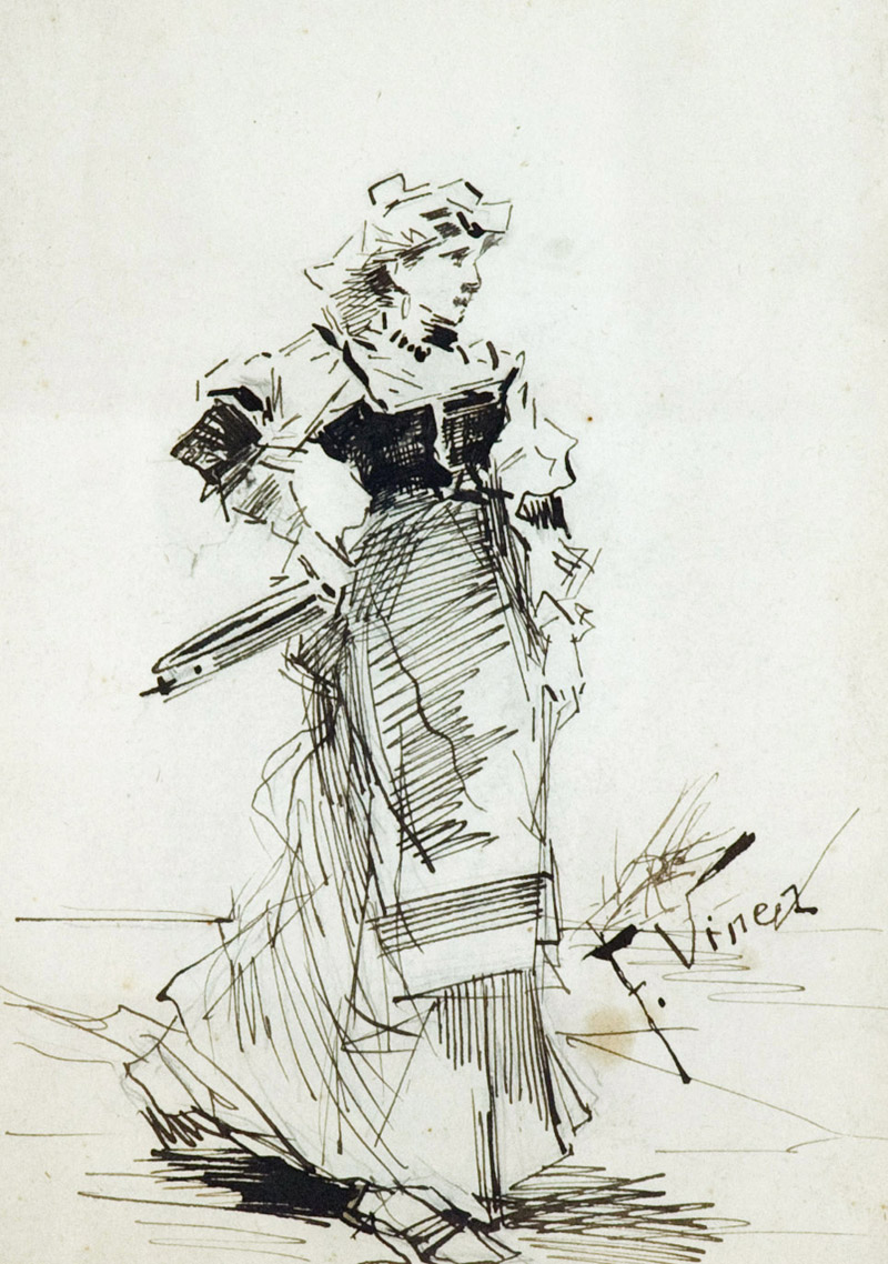 Francesco Vinea Signora China su carta, cm. 20x14 Firmato in basso a destra.