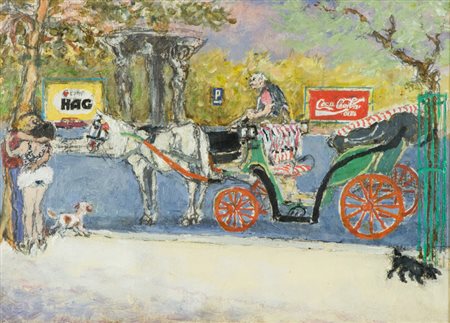 Walter Piacesi Il vetturale e gli innamorati Olio su tavola, cm. 30x40 Firmato in alto a sinistra. Sul verso: firma e titolo. Autentica dell'Artista su foto.