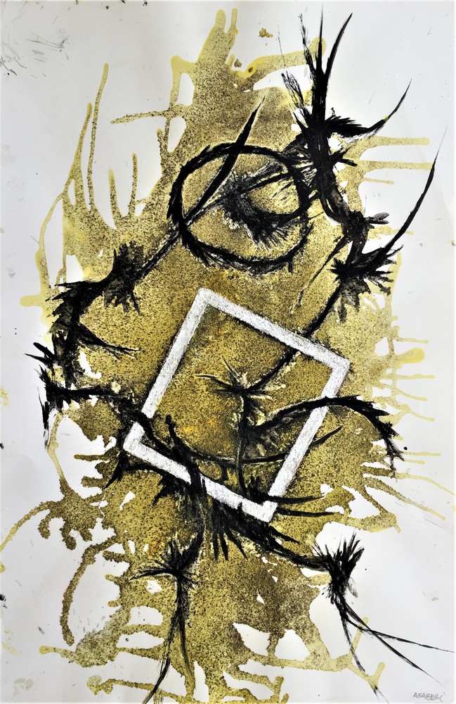 Acrilico e sabbia su carta 47,5x72 cm; firma in basso a destra.