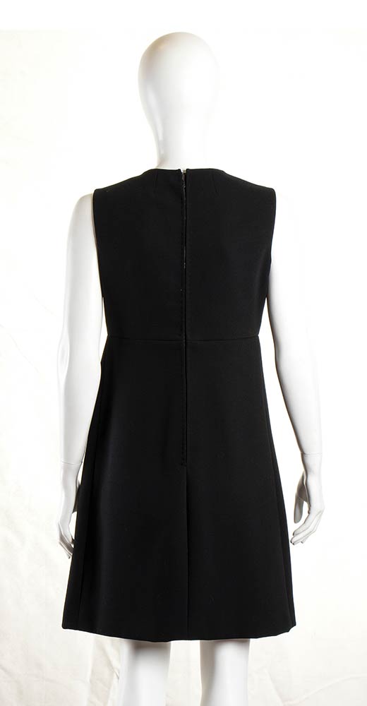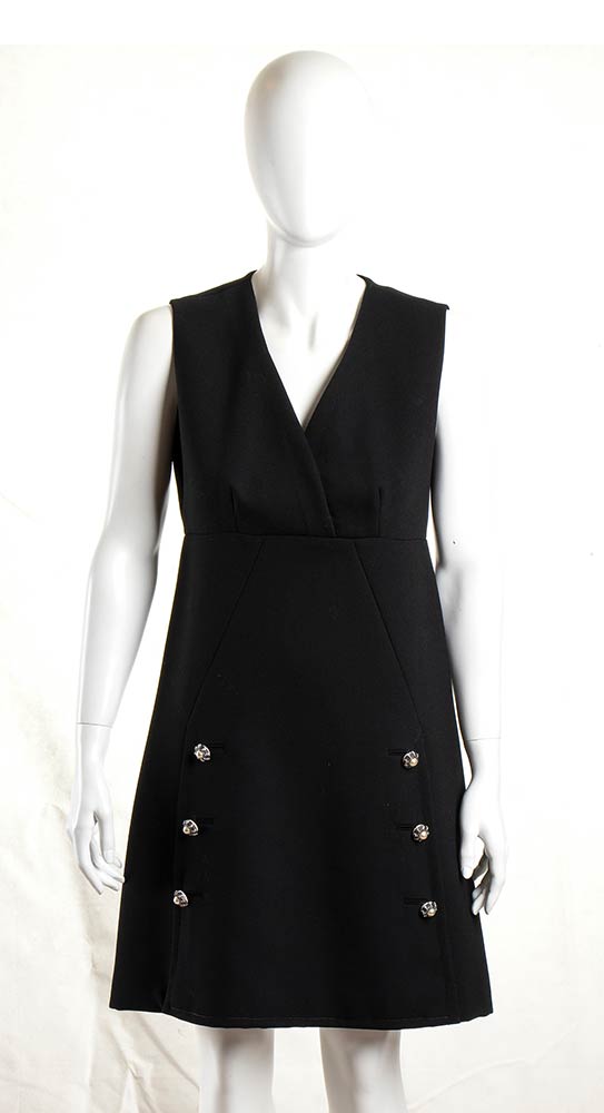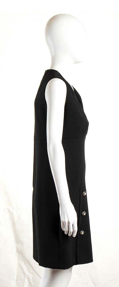 Abito in crepe nero, bottoni gioiello