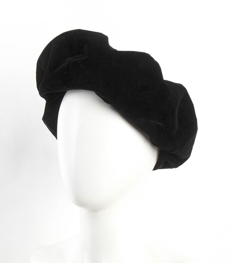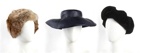 Lotto di 3 cappelli in pelliccia, paglia nera e velluto nero