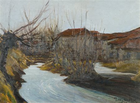Giovanni Maria Mossa Paesaggio verso il tramonto, 1965 Olio su tavola, cm....