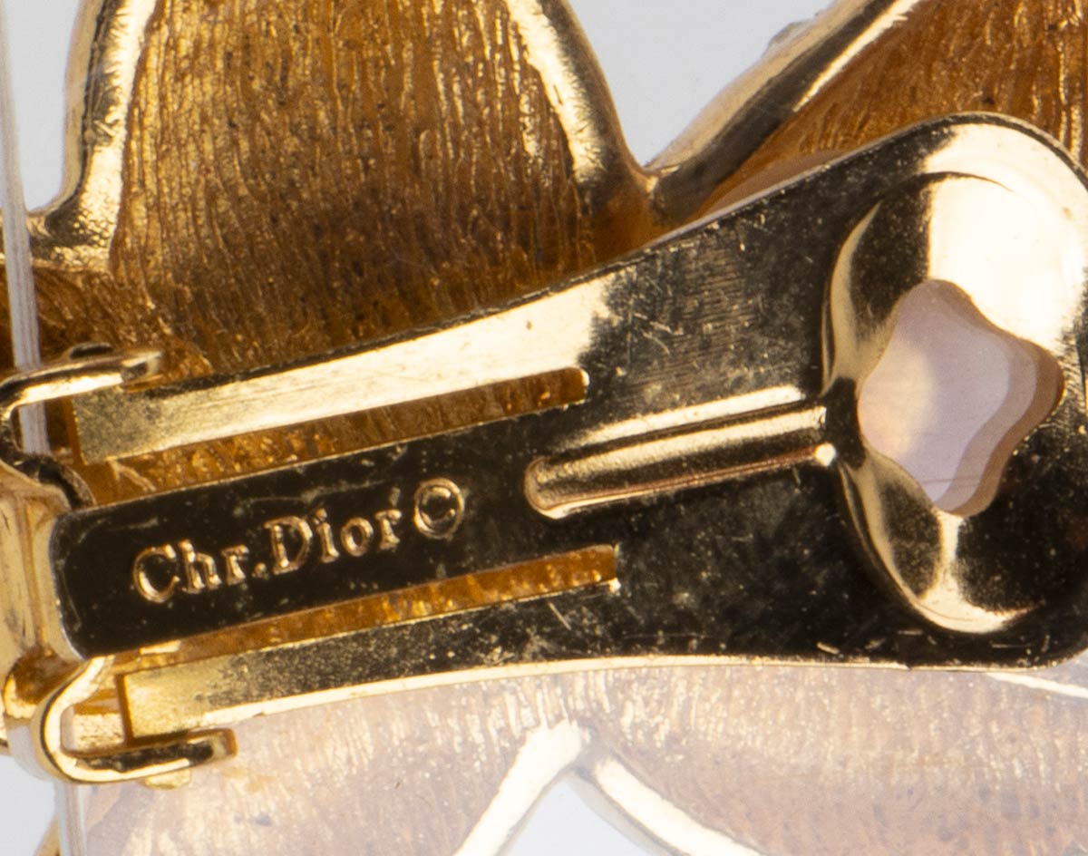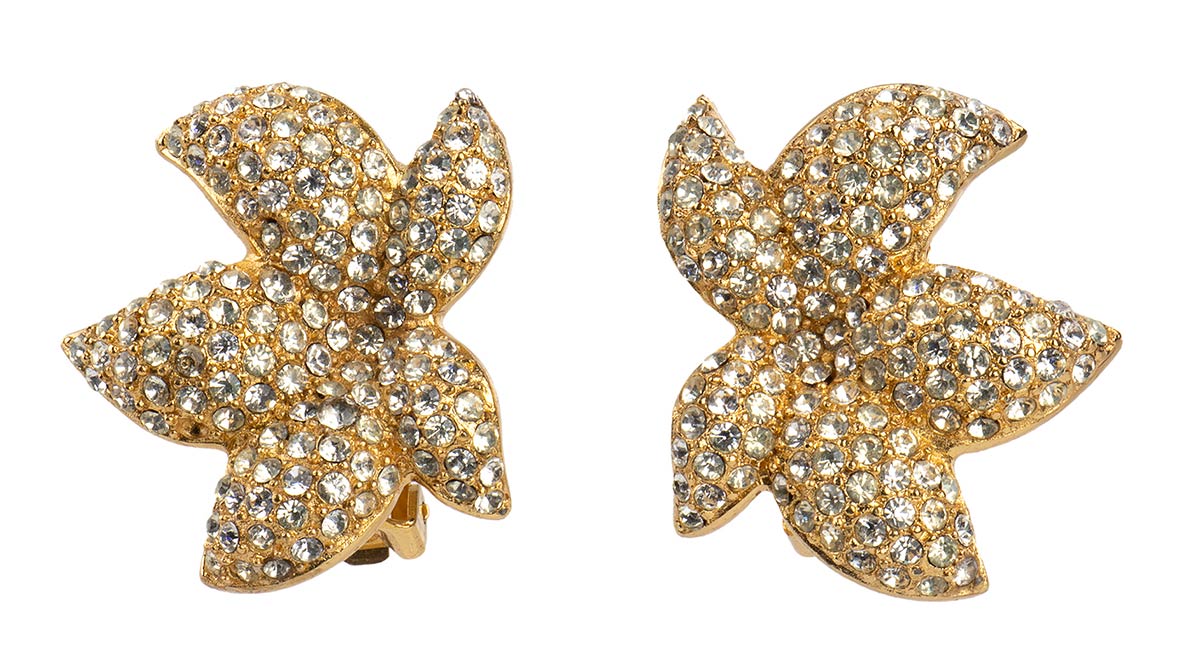 CHRISTIAN DIOR<br>ORECCHINI A CLIP IN METALLO DORATO E STRASS<br>Fine anni 80