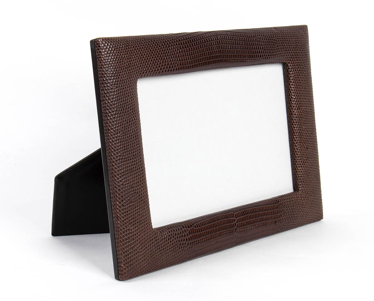 Cornice portafoto in pelle marrone stampata lucertola