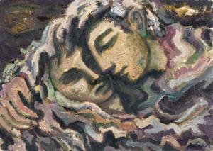 Carlo Levi Torino 1902 - Roma 1975 Gli amanti Olio su tela, cm. 50,2x70 Firma in basso a destra e al verso sulla tela: C. Levi; sul telaio: timbro Galleria d'Arte Bonaparte, Milano, con n. 2196. Storia: Galleria d'Arte Bonaparte, Milano; Collezione pri- vata