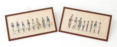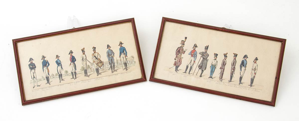 Due stampe acquarellate con uniformi austriache