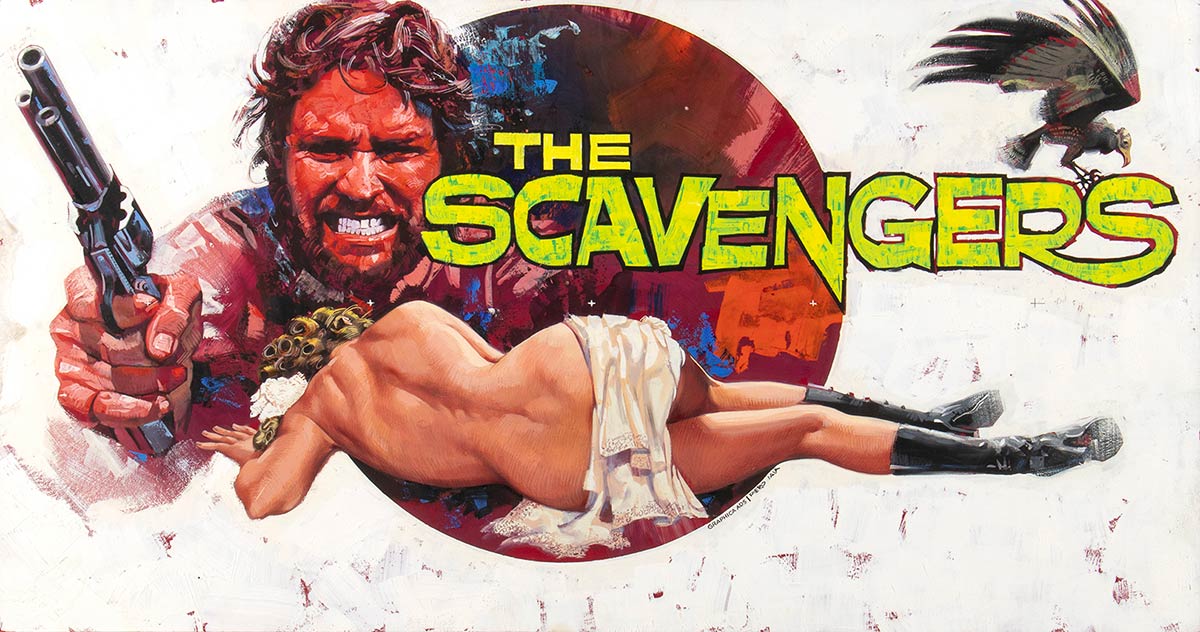 Bozzetto originale realizzato e firmato da Pietro Ermanno Iaia, prolifico illustratore italiano, firmato GRAFICA ADS - PIERO IAIA, per il film THE SCAVENGERS genere western anni '70. Olio su cartoncino. Dimensioni circa cm.70x30. Per la