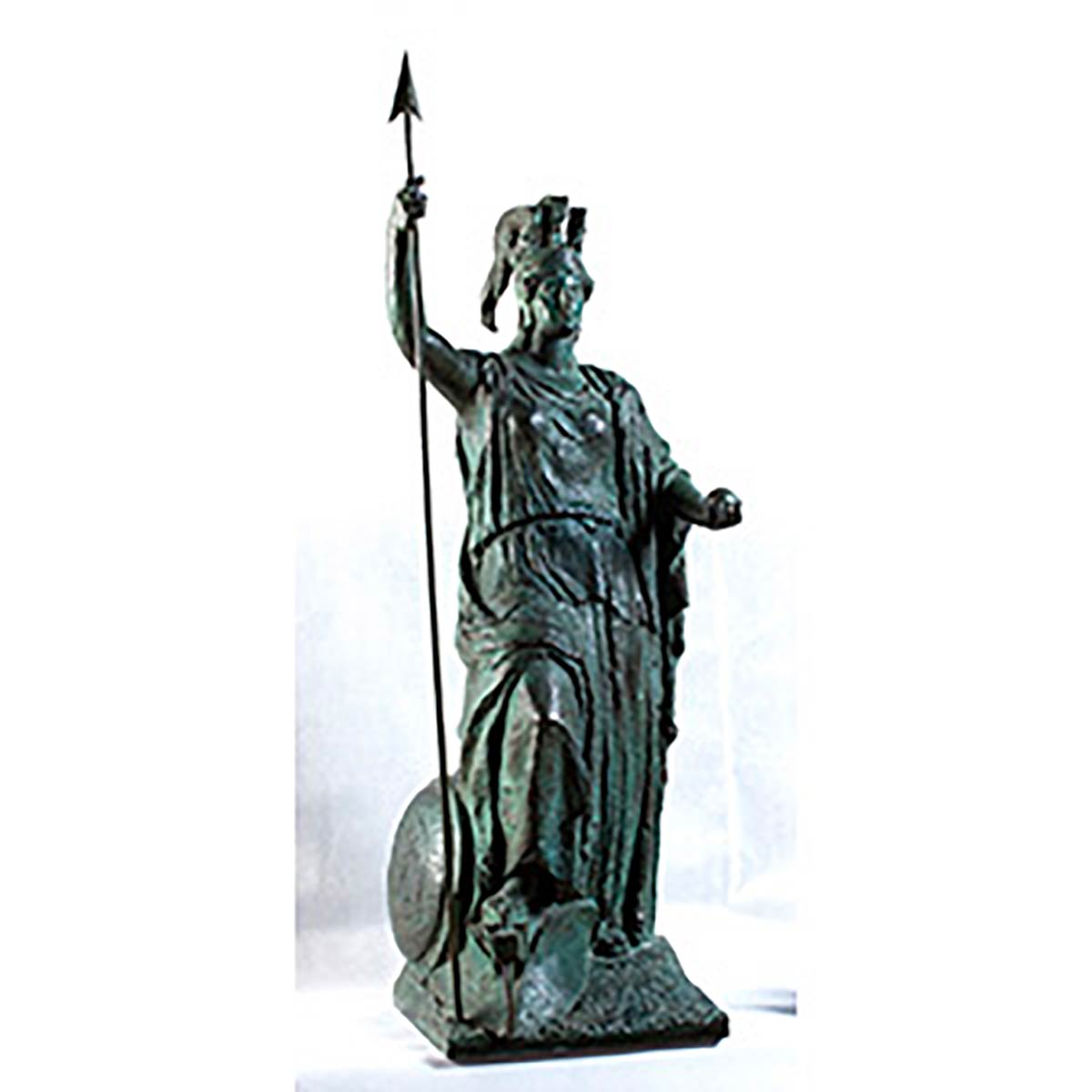 Imponente scultura in bronzo della Dea Minerva. Firma incisa in basso a destra sulla base: E. Rubino . Misure cm.100 x 35 x 35