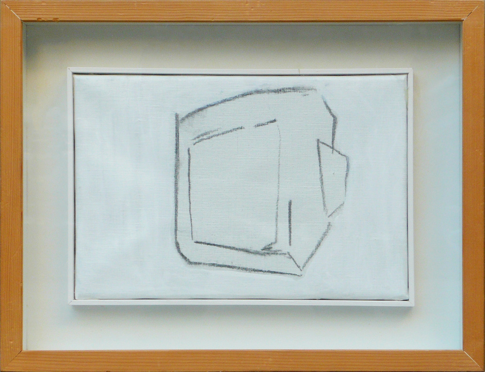 Carboncino e smalto su tela 20x30 cm; firma al retro.