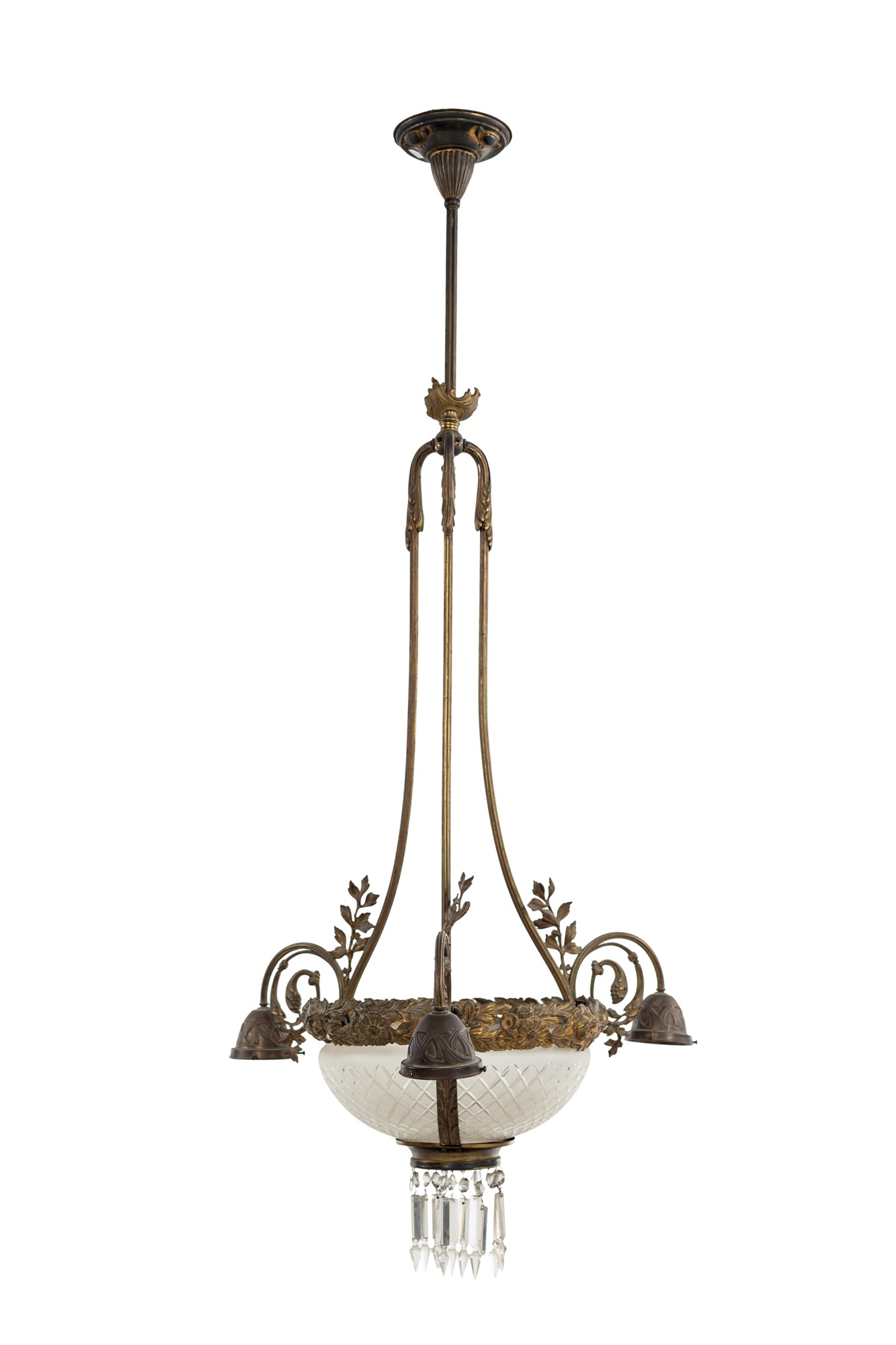 Lot 73 | Lampadario in ottone a tre luci, Anni Trenta