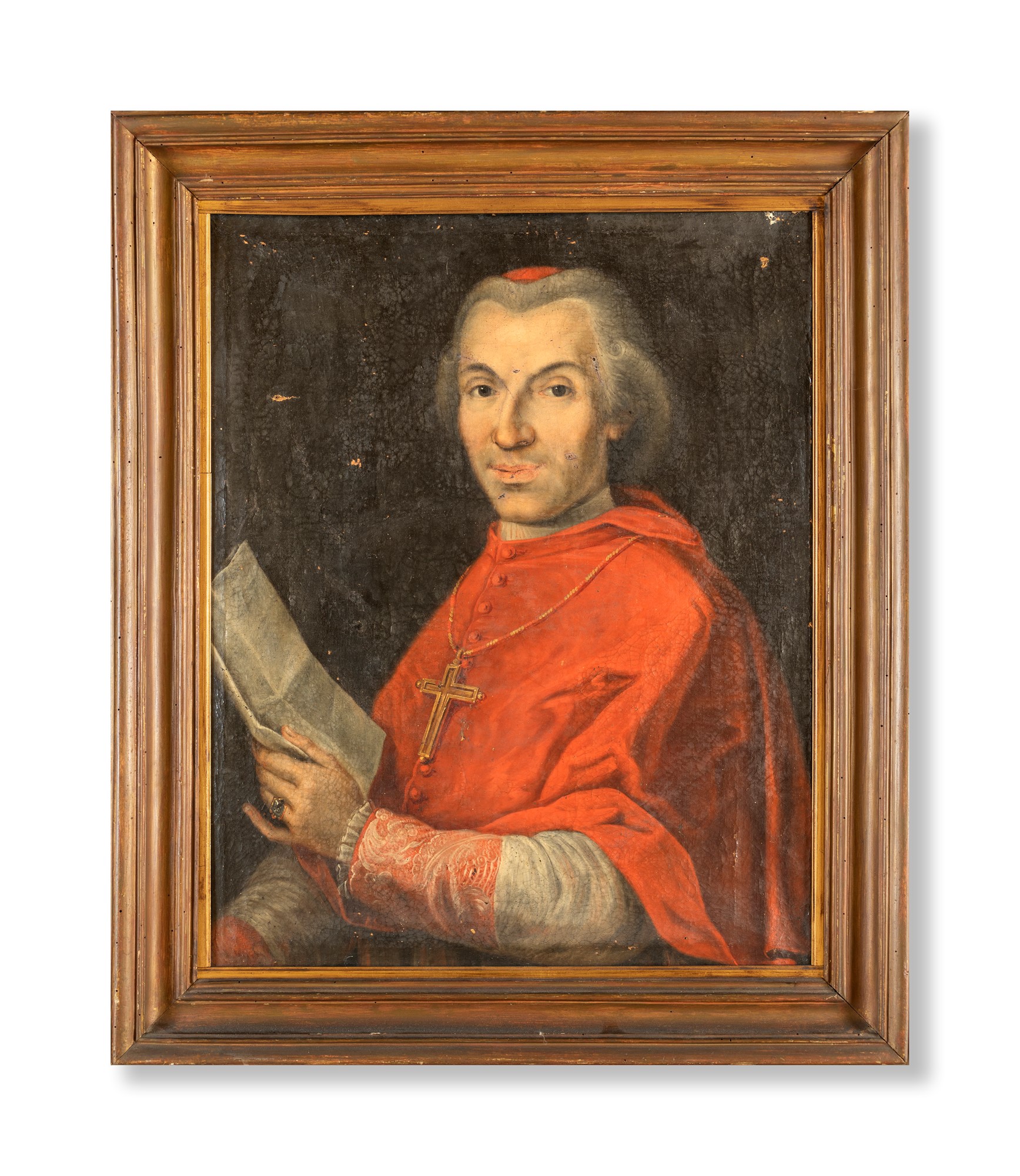 Pittore del XVIII secolo Cardinale con lettera olio su tela cm 73x61