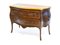Cassettone in noce, Napoli inizio del XX secolo con specchi in radica racchiusi da filettature in legno di rosa; di forma sagomata su gambe a sciabola calzate di scarpette in bronzo, recano due cassetti in colonna frontali e piano in marmo giallo. cm 95x130x62