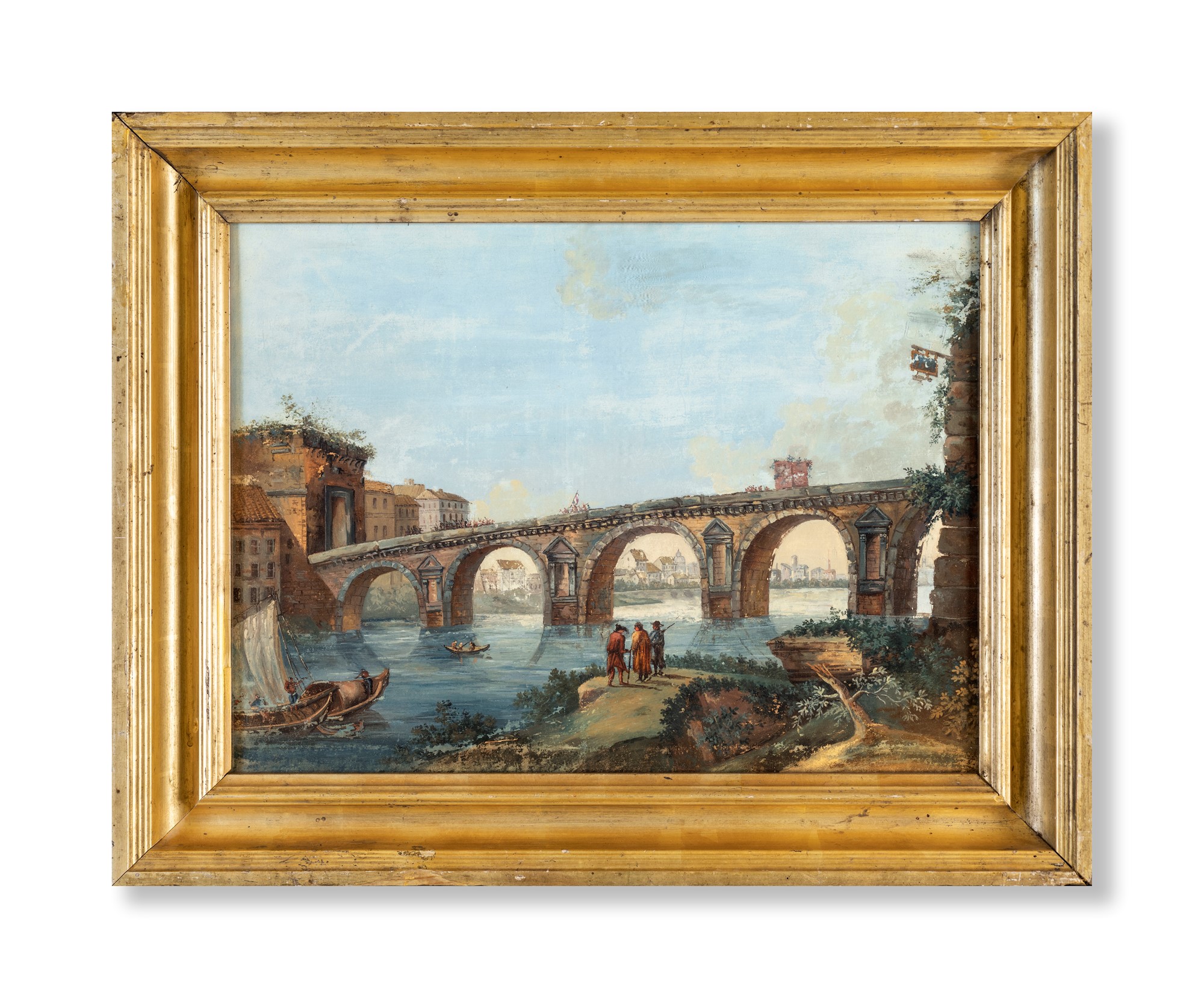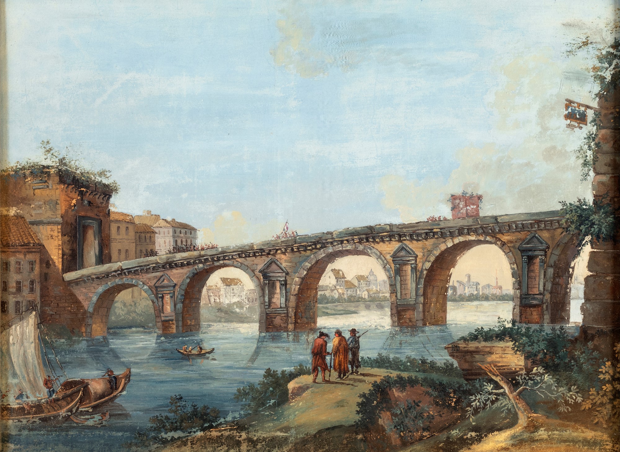 Pittore del XVIII secolo 0-0 Scorcio romano immaginario gouache su carta cm 54x40