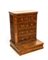 Inginocchiatoio in noce, fine del XIX secolo caratterizzato da quattro cassetti in colonna frontali racchiusi da cornici modanate, con piccole maniglie ad anello sostenuto da mascheroni ferini; base con piano incernierato. cm 84x62x54