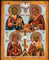Icona su fondo azzurro, Russia centrale XIX secolo raffigurante Cristo Pantocrator, la Vergine ritratta col Bambino e senza, San Nicola. tempera su tavola cm 52x42