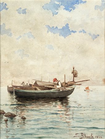 Salvatore Petruolo Catanzaro 1857-Napoli 1946 Riparando le reti Firmato in basso a destra e datato 1922.