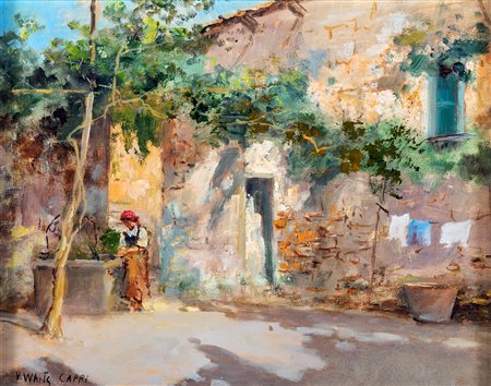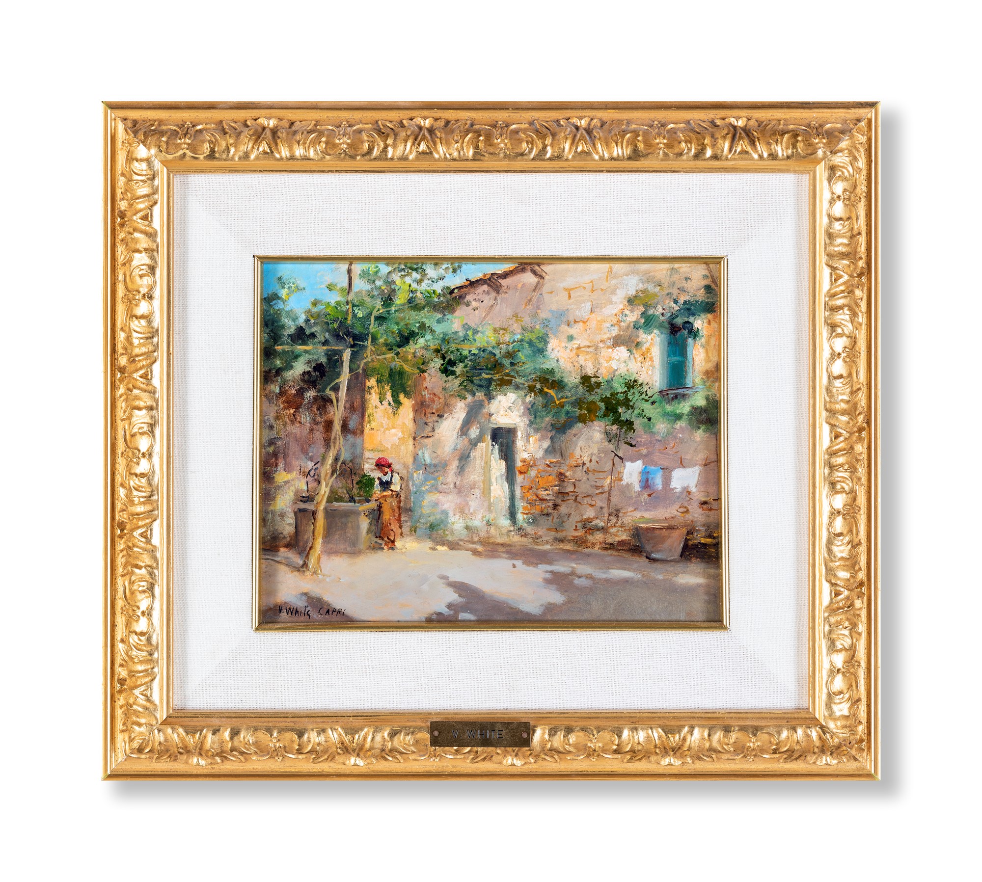 Pittore del XX secolo Donna alla fonte Firma in basso a sinistra non pertinente.