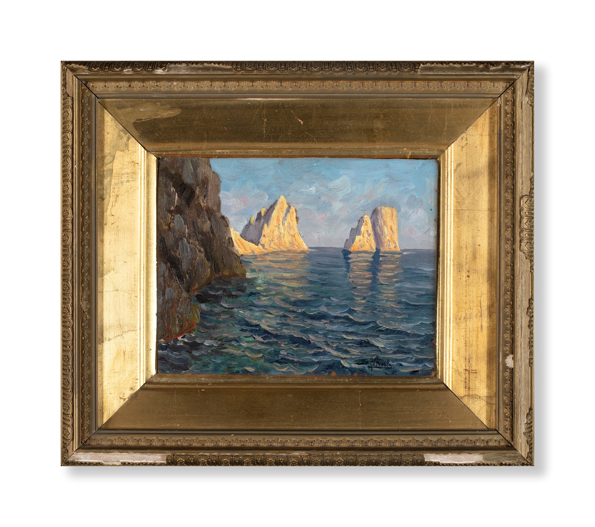 Salvatore Petruolo Catanzaro 1857-Napoli 1946 Faraglioni di Capri Firmato in basso a destra.