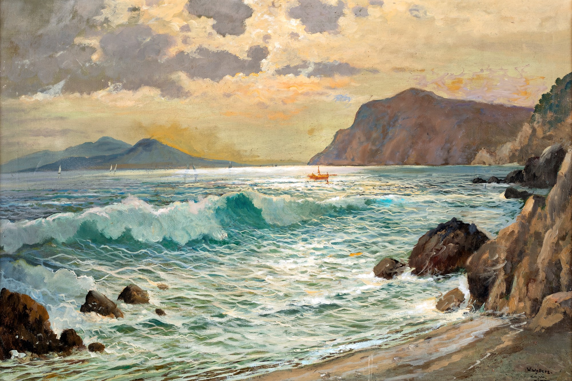 Wilhelm Welters Rotterdam 1881-Sanremo 1972 Mareggiata Firmato in basso a destra. olio su tela cm 60x90