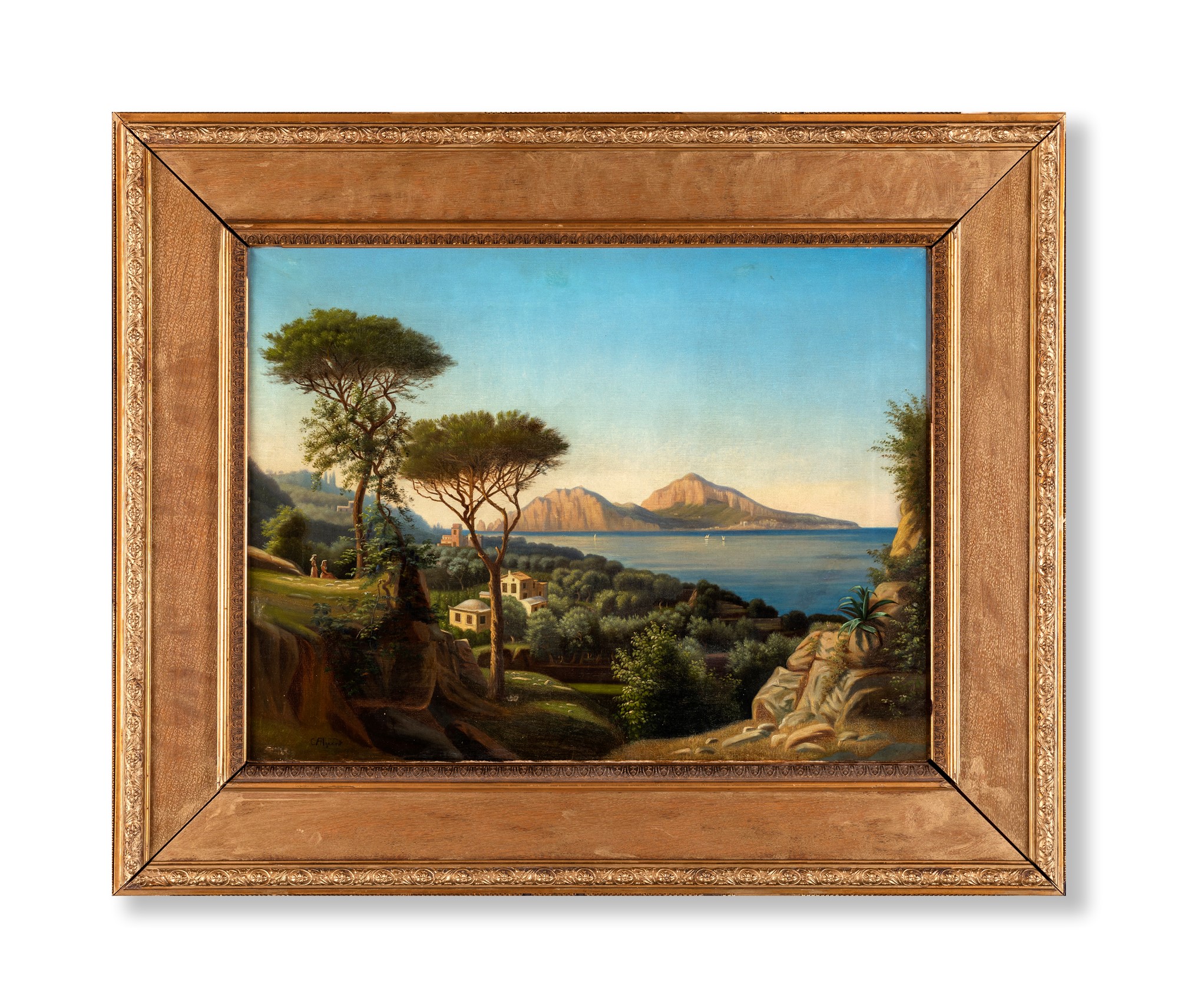 Carl Frederic Aagaard Odense 1833-Copenaghen 1895 Veduta di Capri da Massalubrense Firmato in basso a sinistra. olio su tela cm 57x74