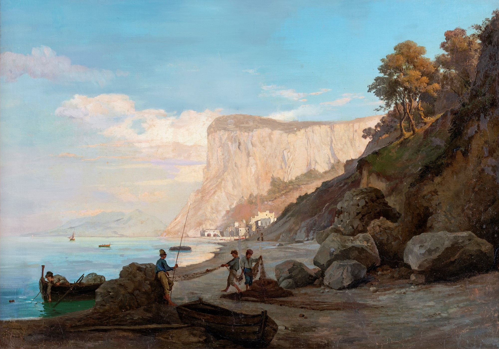 Andrea Cherubini Roma 1833-Capri 1905 Marina grande Firmato in basso a sinistra. olio su tela cm 71x98